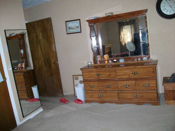 ORIGINAL OWNER . SOLID WOOD DRESSER W/ HUTCH MIRROR .