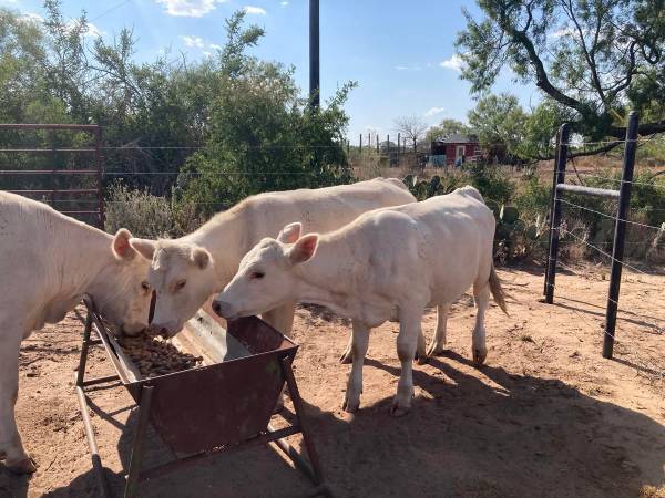 Pure weaned Charolais heifers and steers weighing 650 lbs average weight, 8-9 months old. And also have some bottle feed Charolais weighing 80-100 lbs. all have colostrum, shots and dewormed....