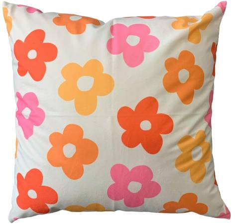 Hot Pink, Orange & Yellow Daisy Throw Pillow (Retro 60s 70s):