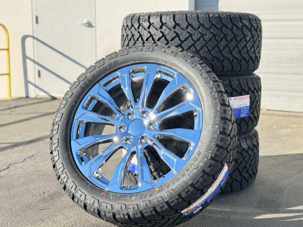 No trades, please don't ask Price is firm Brand-new AGP Chrome wheels and tires set of 4 Aftermarket 22 inch 22x9 +28mm offset 6x139.7 bolt pattern rims wrapped on 33x12.5x22 AT tires Wheels only...